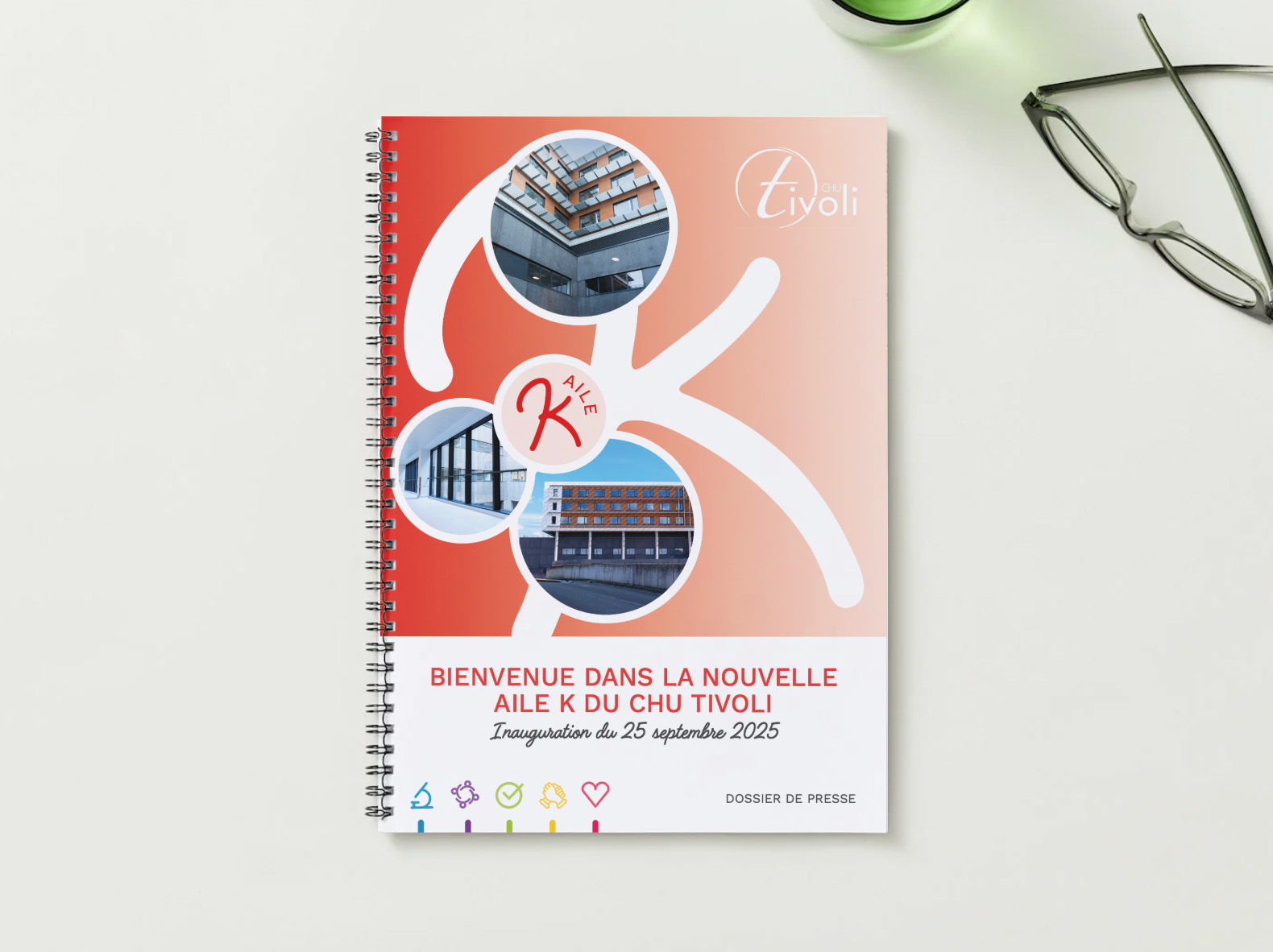 Dans le cadre de mon job étudiant au CHU Tivoli, j’ai rédigé et mis en page le dossier de presse dédié à l’inauguration de l’Aile K.